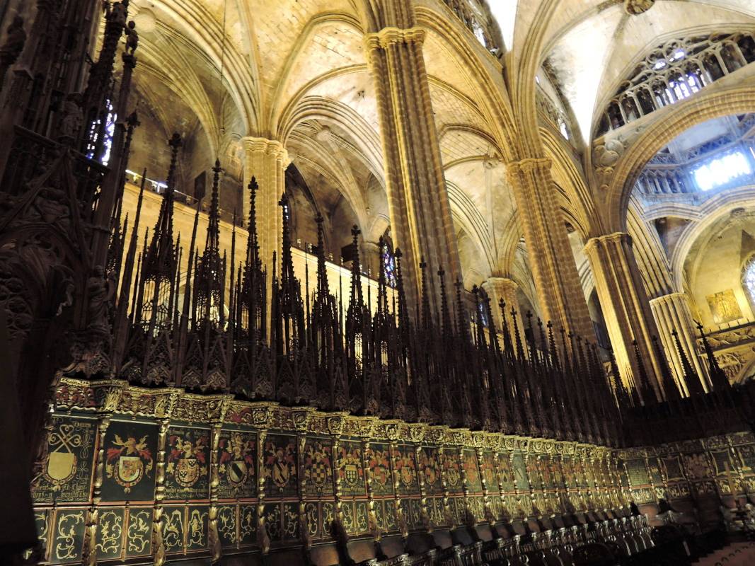 | Prešli sme úzkymi uličkami Barri Gotic, a hoci sme nestihli dvor s 13 husami (13 rokov mala sv. Eulália, keď ju umučili, ale podľa iných tradícií ju mučili 13timi spôsobmi ...) pri hlavnej Bazilike sv. Eulálie, dostali sme sa do baziliky! Gotická katedrála je z 13-15. storočia. Kostoly tu ale stáli od 3.-4. storočia. Rakvy zakladateľov románskej baziliky z r. 1058, predchodkyne tej gotickej, nájdete na stenách vo vnútri katedrály. Dostali sme sa i priamo pred hrobku sv. Eulálie pred oltárom!